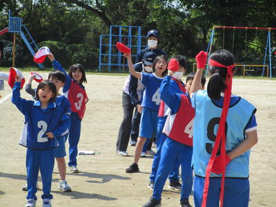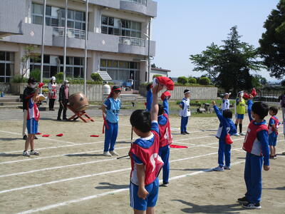 運動会まであと3日。練習にも力が入ります。今日は、まず応援合戦の練習を行いました。青空の下、子どもたちの元気な応援の声が、校庭中に響き渡っていました。とても30数人とは思えない、100人以上はいるような迫力のある声でした。