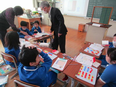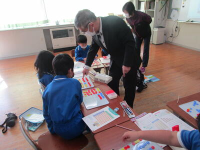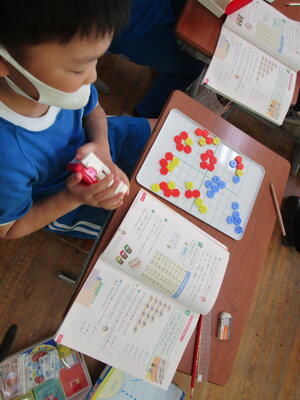 2023年10月24日 11時34分2年生の算数は、かけ算の学習に入りました。今日は、5の段を学習しています。「5のかたまりがいくつ分」というかけ算の考え方を、おはじきを使って実際に表しながら確認していました。最後に5の段をみんなで唱えましたが、ちゃんと覚えている子が多く、担任の先生からも「すごい!」と褒められていました。みんな、頑張っていますね。