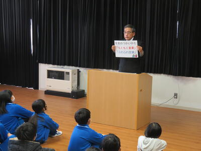 2023年12月6日 14時26分今日は、給食の後に全校集会が行われました。表彰の後、校長からは言葉の使い方についてお話ししました。自分の気持ちを相手に伝えるとき、「チクチク言葉」と「ふわふわ言葉」のどちらが伝わりやすいか、子どもたちも真剣に考えてくれました。今月の歌は途中でCDが切れてしまうハプニングがありましたが、みんなしっかり最後まで歌うことができ、素晴らしかったです。やはり「元気なあいさつ」と「明るい歌声」は、西二の自慢です。
