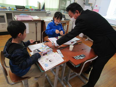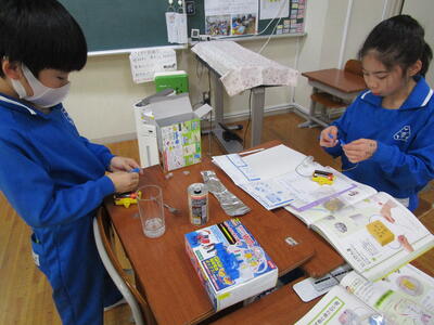 2023年12月8日 11時10分3年生は、理科で「明かりをつけよう」の実験に取り組んでいました。電気を通す物と、通さない物について、自分たちの予想をもとに実験して調べていきます。授業を見ながら、「これは〇〇なの?」と少しだけ声をかけると、「これは△△です。次は▢▢だから…」「✕✕のやり方は…」などなど、鋭い意見があちこちから返ってきました。この意欲と反応のよさは、3年生のすばらしい長所ですね。