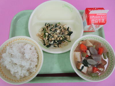 2023年12月8日 12時08分今日の給食は、牛乳、麦ご飯、鶏肉のゴマ味噌煮、ほうれん草ともやしの卵チーズ和えで、総カロリーは679㎉でした。鶏肉のゴマ味噌煮は、ゴマと味噌に加えてゴボウの風味がよく出ており、とてもおいしかったです。子どもたちにも「ゴボウっておいしいな」と感じてもらえたら嬉しいです。ほうれん草ともやしの卵チーズ和えは、給食の定番メニューといった感じで、安定のおいしさでした。おいしい給食、いつもありがとうございます。