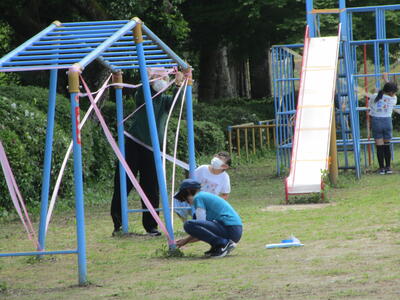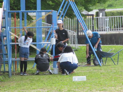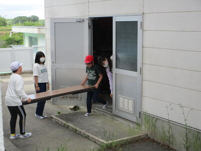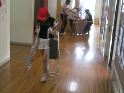 2024年5月17日 14時19分5校時目に5,6年生と職員で運動会の準備を行いました。机や椅子、テントの準備、トイレの清掃、遊具の固定から校庭の石拾いまで、みんなで手分けして作業を進めました。さすが5,6年生は自分からどんどん働いてくれるので、とても順調に作業を終えることができました。準備万端整って、明日はお天気も良さそうです。みんなで運動会を大いに楽しみましょう。