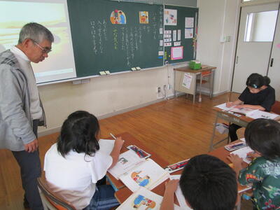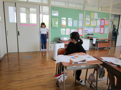 2024年5月22日 12時42分「校長先生、校長先生の役をやって下さい!」たまたま通りかかったところで2年生に呼ばれ、教室に入ってみると、道徳の授業中でした。今日は、礼儀の大切さについて学んでいるそうです。そして、教材文の主人公のように、もし自分が校長先生と話をするとしたらどうするか、実際にやってみたいとのことでした。トントン、とノックをして「失礼します」と入ってくる子どもたちの様子は・・・いつも校長室に来るときと全く同じでした。つまり、2年生は日頃からちゃんと礼儀正しい言動ができている、ということです。日頃から当たり前のことが当たり前にできている、とっても立派な2年生たちでした。