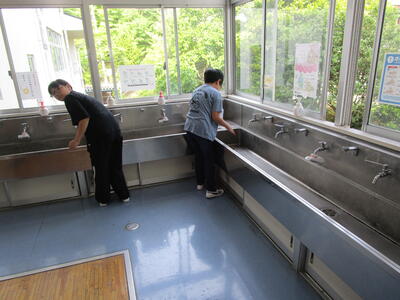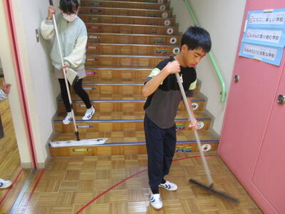 毎週木曜日の朝は、ボランティア清掃が行われています。子どもたちは、時間になると自分たちの担当場所に向かい、黙々と作業に取り組んでいます。「進んで働くことができる」西二の子どもたちのよさがよく表れている学校生活の一場面です。