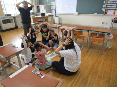 2025年6月10日 12時31分今日は1,2年生がニバ先生と一緒に外国語の学習をしていました。ニバ先生が英語で言った「お天気」のカードを当てるゲームでは、みんな素早い動きでどの子が一番かわからない程でした。しかし、時々「お手つき」があり、後から答えた子が勝つこともあってすごく盛り上がっていました。今日はお天気がよく変わったので、この勉強にぴったりの日だったかもしれません。
