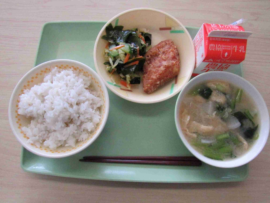 ・麦ごはん ・牛乳 ・わかめ漬け ・さば竜田揚げ