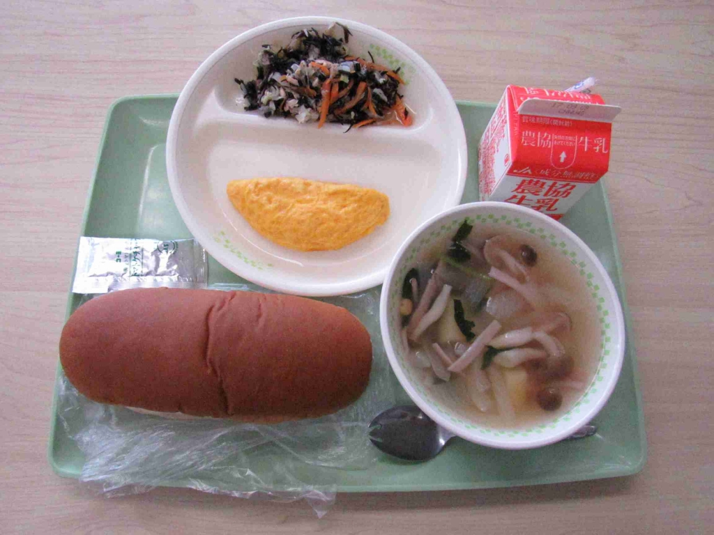 ・黒砂糖コッペパン ・牛乳 ・オムレツ