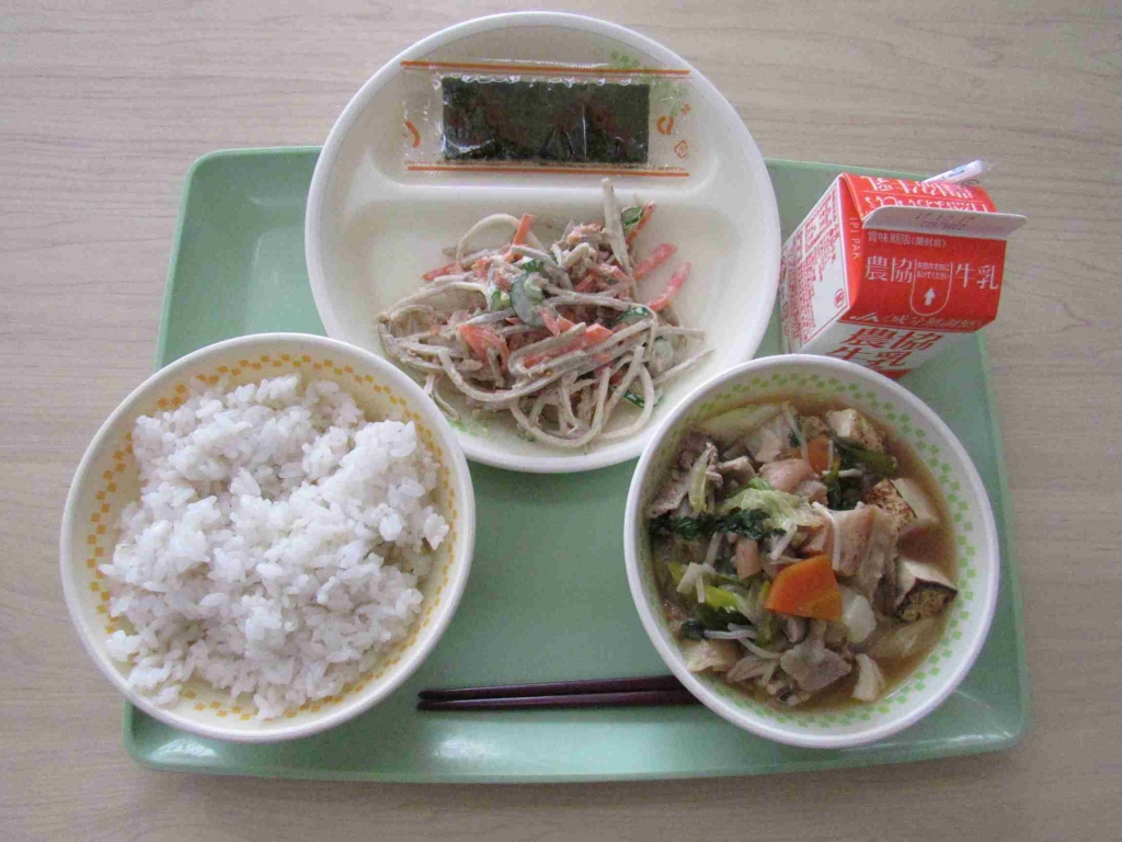 ・麦ごはん ・牛乳 ・すき焼き煮 ・かみかみごぼうサラダ