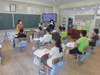 2020年5月29日 11時46分5月29日(金),水曜日に続いてALTのヴィオレッタ先生と外国語の学習をしました。高学年ではヴィオレッタ先生やフィリピンの子との紹介などをしましたが,今日は,各自の自己紹介をカードを用いて行いました。自分の好きな〇〇を数種類カードに書き,そのカードをもとに,自己紹介をしていきました。とても楽しそうに行っていました。