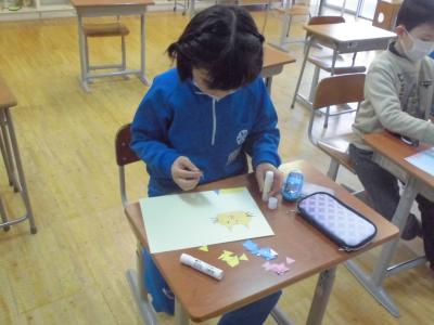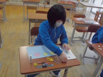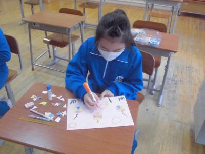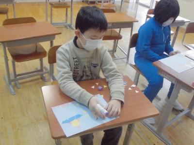 2021年2月3日 11時42分3年算数科の学習では,二等辺三角形と三角形の辺の長さと角の大きさの性質を生かして形を敷き詰め,思い思いの形をつくりました。