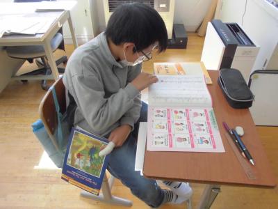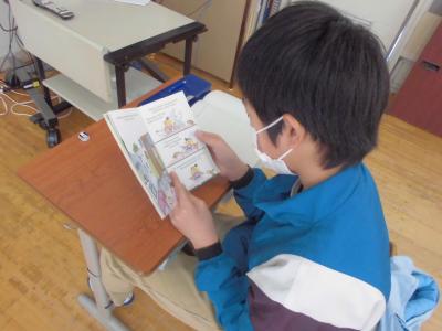 6年生では,ヴィオレッタ先生が持ってきてくださった英語の絵本を教材にして,英文を読んだり,書かれていることを読みとったりしています。積極的に読もうとしている6年生はとても前向きだと思います。
