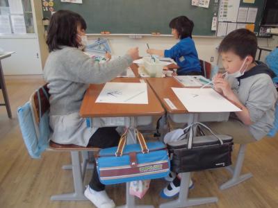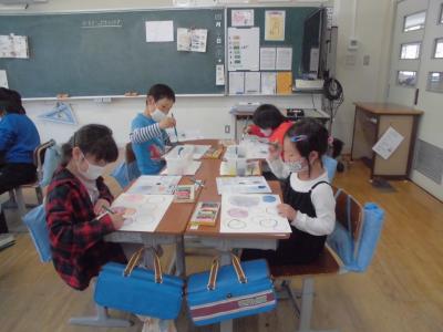 2021年4月21日 17時15分3・4年生の図画工作科の授業で,3年生は水彩絵の具の特徴を生かして,水で濃淡をつけ,シャボン玉の様子を工夫して表現しました。4年生は絵の具を吹いてできた形を生かして表現しました。水彩絵の具のいろいろな技法を試しながら,表現を楽しんでいました。