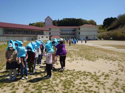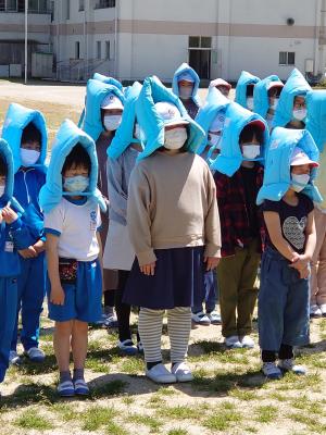 避難訓練の風景です。安全教育担当の計画の下、実施しました。今日の訓練は、地震が起こり、その後に火災が発生した想定でした。担任の指示をよく聞いて安全に避難することができました。