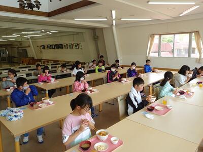 スコアオリエンテーリングも無事に終わり、最後の昼食を摂っています。少し疲れた様子ですが美味しくいただいています。