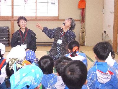 だんごをゆでている間,昔話をききました。