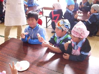 できた,できた。だんご,おいしいね。