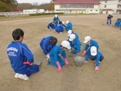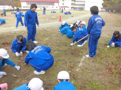今年は,校庭の除草とイシクラゲの除去を,一緒に行いました。