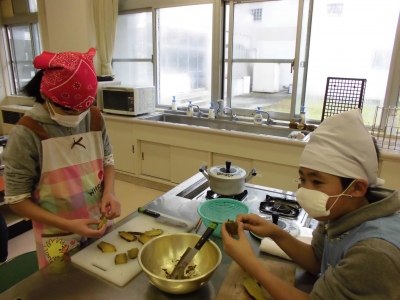 2017年11月28日 08時40分今日は6年生がサツマイモの調理をしました。