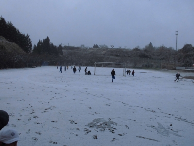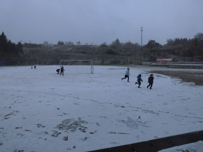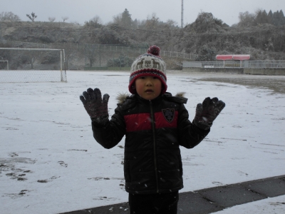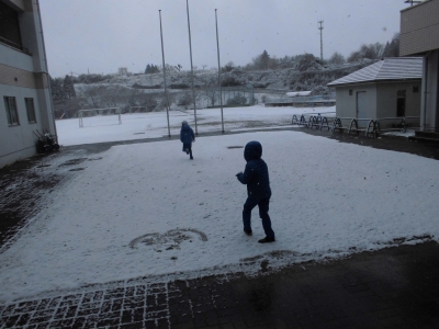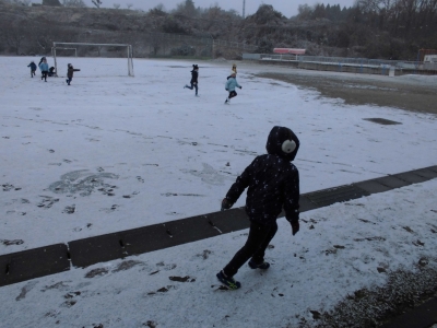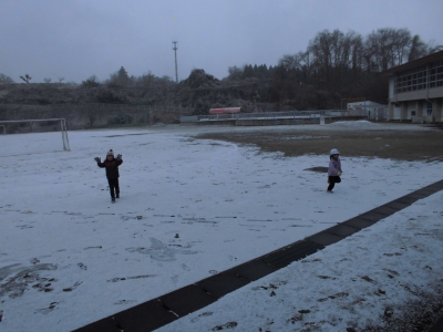 うっすらと白くなった校庭で,子どもたちは元気よく遊んでいました。(^-^)