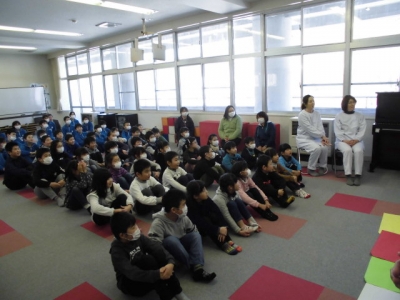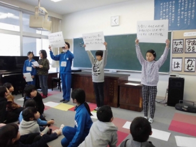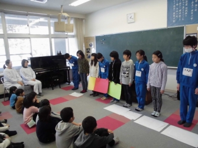 調理員さんをご招待して,給食委員会を中心に会を進めました。