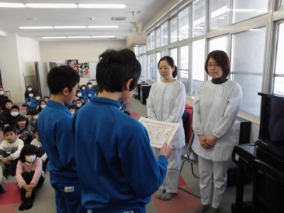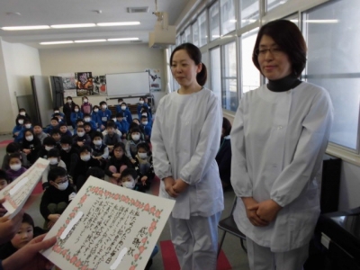 最後に,給食委員会から,調理員さんに感謝状をお渡ししました。