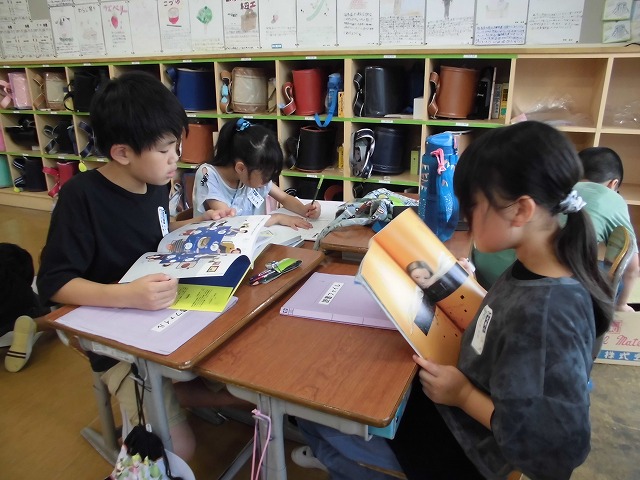 2025年12月12日 11時03分図工大好き1年生。今日は「おはなしすごろく」作りに取り組みました。好きなお話を選んで、ストーリーをもとに箱の中に双六を作りました。1年生の子どもたちは発想が豊か。思い思いに楽しみながら、素敵な双六を作っていました。