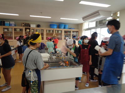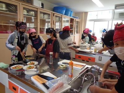 新型コロナウイルスで実施できなかった調理実習ですが、今回、消毒など、「学校の新しい生活様式」をもとに、感染防止対策をした上で行いました。子どもたちも予防を意識して実習を行っていました。