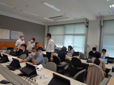 2020年6月19日 17時04分今日は、放課後の研修の時間に、須賀川市教育委員会の指導主事の先生、3名をお迎えして、プログラミング教育の研修を行いました。