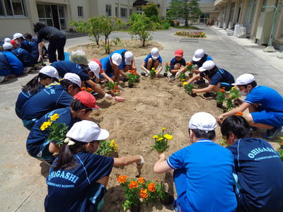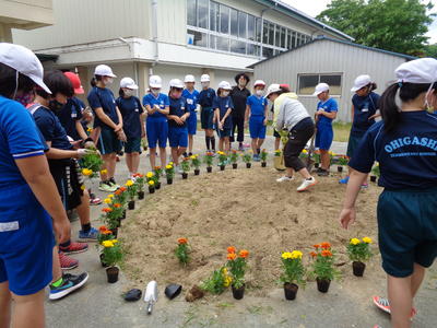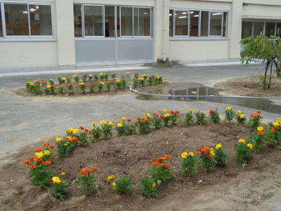 2020年6月11日 16時23分今日は、5年生が中庭の花壇を夏花壇にしました。