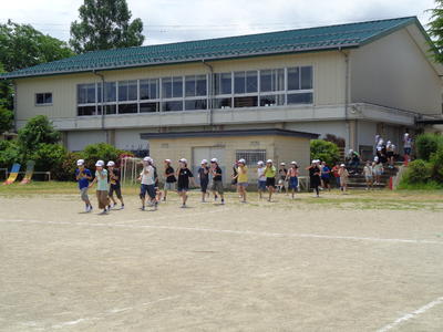 リレーですが、リレーゾーンに入ったらタッチをしたことにし、各学年とも楽しみながら競い合っていました。