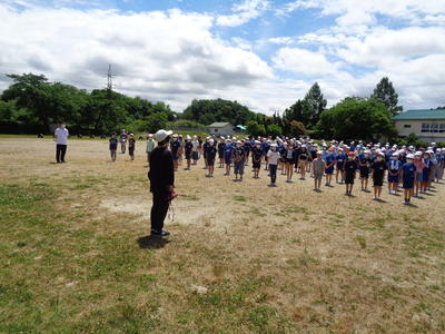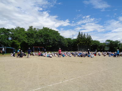 暑い中でしたが、子どもたちは真剣に放送を聞き、避難していました。