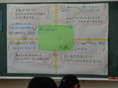 今日は、今年度、学校全体で進めている総合的な学習の時間について、先週の話し合いをもとに、進捗状況をお互いに報告し参考にし合いました。また、思考ツールについても各学級での実践の様子を写真で見ながら、その有効性について共有しました。これからも、子どもたちが、「わかる・できる・楽しい」授業を目指します。