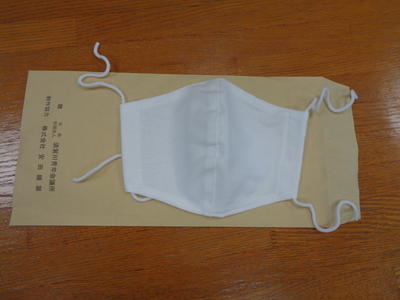マスクは、洗って繰り返し使える布製です。とてもきれいに縫製されています。安田縫製様もありがとうございました。子どもたちにも明日の登校日の全校集会で伝えたいと思います。明日、配付します。ゴムをお子さんのサイズで結んでいただき、使用前に洗ってからご使用ください。
