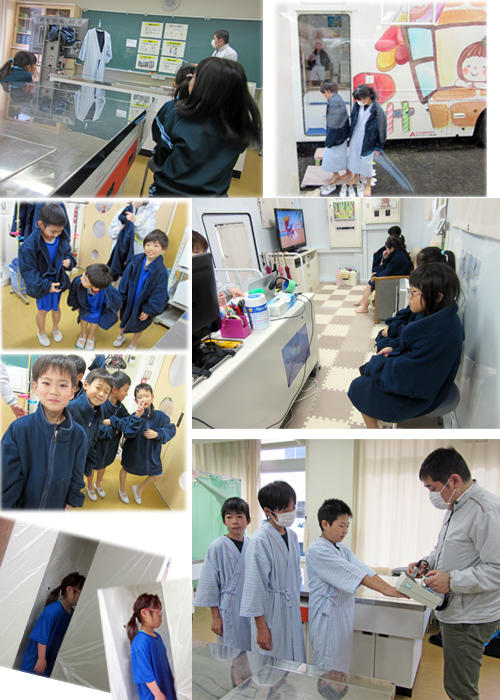 バスの中ではビデオを見たり、まちがいさがしをしたり、リラックスして検査をしました。