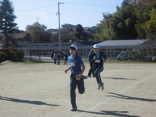 好天の中、持久走記録会が開かれました。子どもたちは、持てる力を発揮して競技に取り組んでいました。