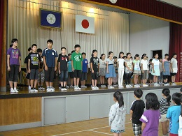 2015年6月30日 14時41分 朝、子どもたちが登校すると1年生・2年生・3年生が