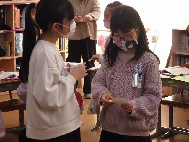 2024年12月16日 14時23分4年生の道徳では「自分のよさ」をテーマに、自分の「よさ」に気づき、長所を伸ばそうとする心情を育てる学習に取り組みました。友達の「よさ」をカード書いて、お互いに手渡しました。友達が気づいた「自分のよさ」を知ることによって、もう一度自分自身を見つめ自分に自信を持つことができました。クラスのまとまりがよい4年生。友達一人ひとりをしっかり見つめ、「よさ」を伝え合っていました。