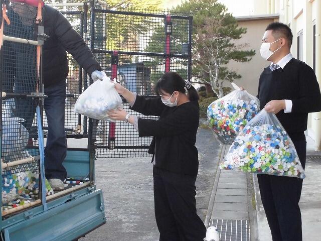 2024年12月19日 09時20分大東小では児童会が中心となって「ペットボトルキャップ」を集めています。本日、集まったプルタブを「世界のこどもたちにワクチンを日本委員会」の回収団体に手渡しました。集まったプルタブは、146.9kg、ワクチン約75人分もの量になります。各家庭で一つずつ集めていただいた善意が、こんなにも大きくなりました。ご協力ありがとうございました。