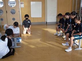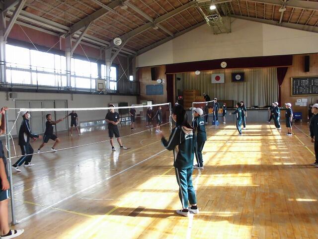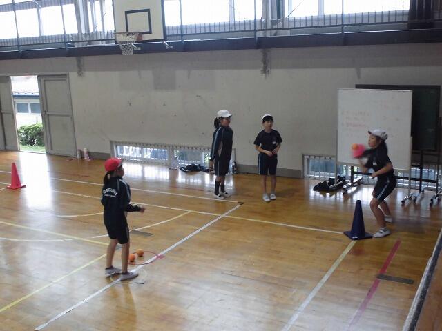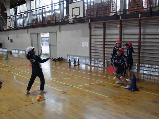 2024年11月18日 10時19分6年生の体育では「ネット型ボール」に取り組んでいます。あまり体験したことのない種目のため、だれでもできて楽しめるようルールを工夫して運動しています。今日はレシーブなどの練習後、班ごとにゲームを行いました。審判などの役割を分担して行いました。アドバイスしたり<助け合ったりしながら全員が楽しめるように気を配りながら取り組んでいました。