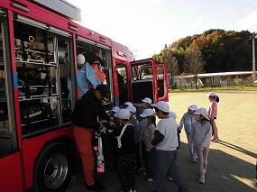 2024年11月18日 14時34分第3回避難訓練を行いました。今回の避難訓練では、子どもたちに知らせず休み時間終了後に実施しました。非常ベルが鳴ったら放送を確実に聞き、避難することが大切であることを学びました。全体会では須賀川消防署の方に消火器の使い方を教えていただきました。また、職員で消火栓の使い方を確認し、特別に消防車両を見学させていただきました。
