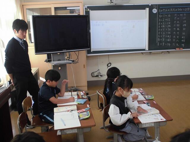 2024年11月12日 10時37分2年生の算数では「かけ算」について学習しています。今日の算数では「6の段」について学習しました。6の段の九九の構成を確認した後で、秘密を見つけでしたました。友達と相談し合いながら6つずつ増えることなどについて見つけ出していました。