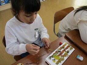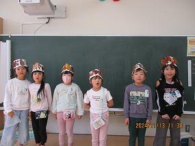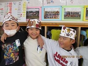 2024年11月13日 12時13分1年生が生活科の学習で、校庭に出て秋を見つけてきました。色とりどりの落ち葉や花などたくさん見つけました。集めた「秋」を使って、冠を飾り付けました。自分だけが見つけた秋、自分だけの冠。すっかり秋を満喫した1年生でした。