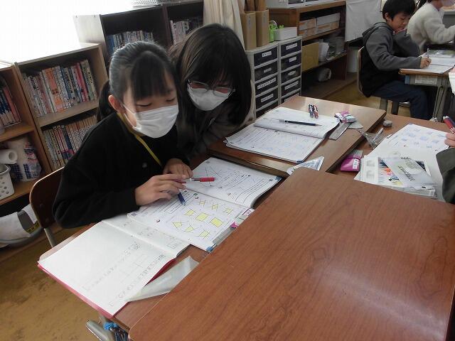 2024年11月14日 10時17分4年生の算数では、二組の直線が交わった時にできる四角形の仲間分けをしました。平行な直線に着目し、二組あるもの、一組だけのもの、まったくないものの3つに分けてみました。その後、分けられた四角形にはそれぞれ名前があることを確認しました。操作を通して図形の特徴をつかむことができました。