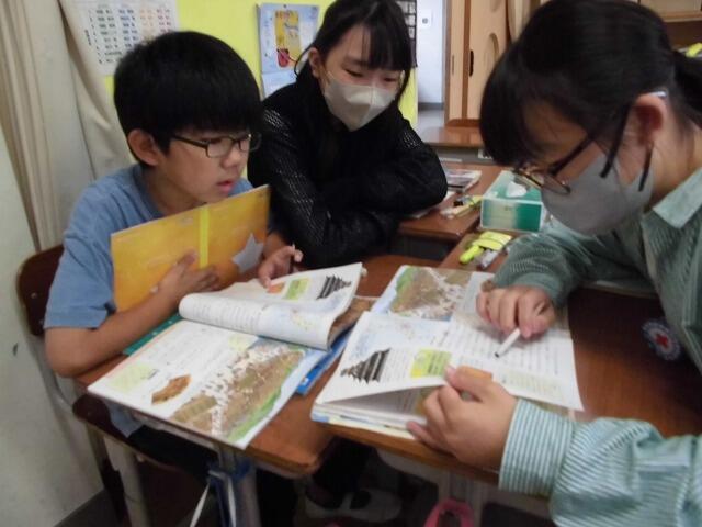 2024年10月28日 11時00分大東小では、すぐには解決できない問題を自分だけでなく友達に聴いたり、一緒に考えたりしなければできない学習に取り組むことがあります。6年生の社会でも、歴史上の人物が行ったことについて、教科書や資料集などを使ったり、グループの友達と考えたりして答えを見つけ出そうと必死に取り組んでいました。