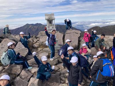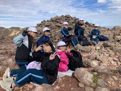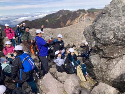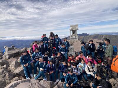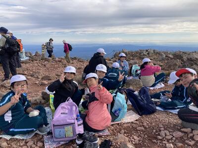 2024年10月24日 11時36分全員無事に山頂に辿り着きました。みんなやり遂げた満足感で一杯です。