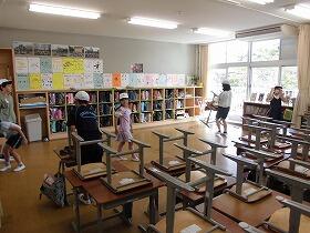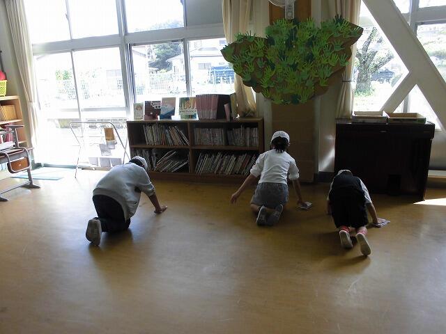 大東小の子どもたちは、奉仕活動に熱心に取り組みます。今日の清掃でも、班長のリーダーのもと熱心に掃き掃除や拭き掃除に取り組んでいました。縦割りで活動しているため、上級生の望まして姿が、しっかりと下級生に受け継がれています。