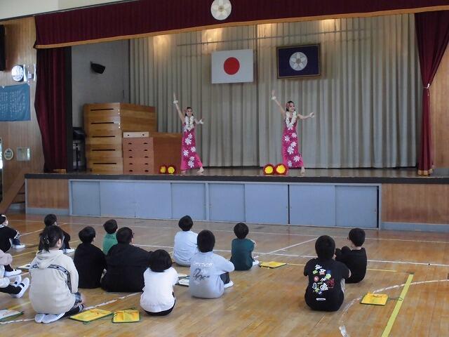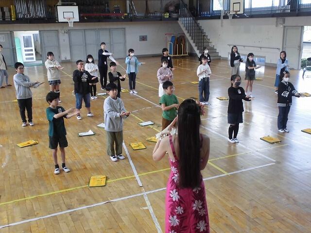 スパリゾートハワイアンズのフラガールの皆さんが来校され「フラガールきずなスクール2024」を4年生で実施しました。「生き抜く力」をテーマに未来に向けてたくましく生きる姿勢を伝える目的で実施されました。フラガールのお二人から、震災の体験談、コロナ禍での動画配信などの話をお聞きし、当たり前の生活がどれだけ恵まれているか、それが一番幸せなことだと教えていただきました。また、フラダンスについても教えていただき一緒に踊ったり、フラショーを見せていただいたりしました。子どもたちは、楽しむだけでなく人と人との絆、諦めない気持ちの大切さを学ぶことができました。