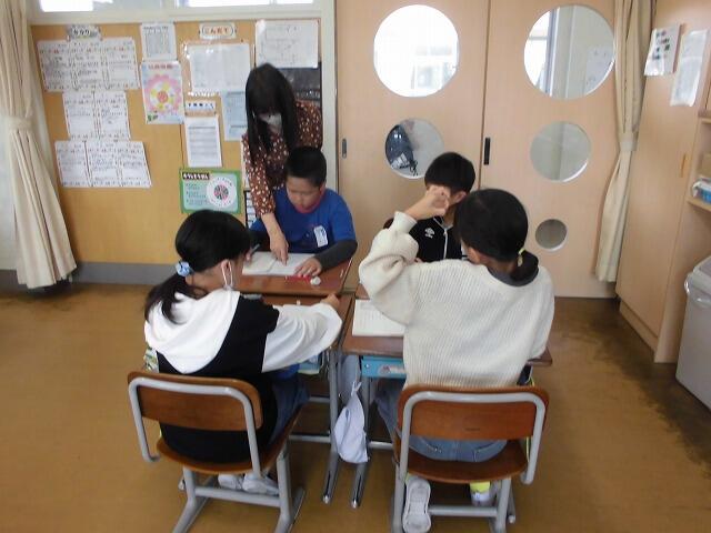 3年生はいつも4人グループで友達と代わり合いながら授業を行っています。お互いに支え合い、学ぶことで友達とのよい関係を築いています。
