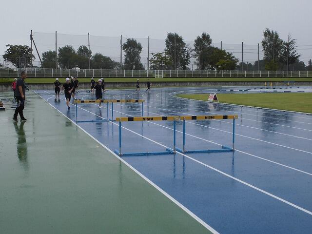 2024年9月19日 15時46分6年生は地区大会目指して陸上練習に毎日取り組んでいます。今日は大会会場の鳥見山陸上競技場で練習を行いました。あいにくの天気でしたが、本番会場一つ一つ確かめながら練習を行いました。