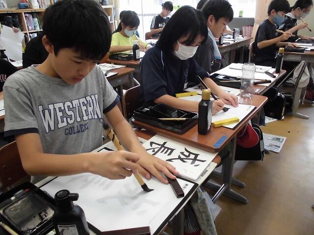 2024年9月20日 11時04分5年生の書写では字形と筆順に気をつけて「成長」の字を書きました。筆順によって画の交わり方が決まること、字形を意識して書くことなどのポイントに気をつけて書いていました。字の上下のバランスが難しく、納得いくまで何度も書いていました。